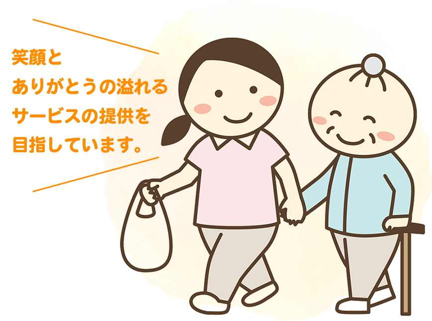 ご自宅で自分らしい生活を送れるようサポートし、お一人お一人に合わせ、喜んでいただけるサービスを提供いたします。自立した快適な日常生活が出来るよう真心を持って支援に励みます。